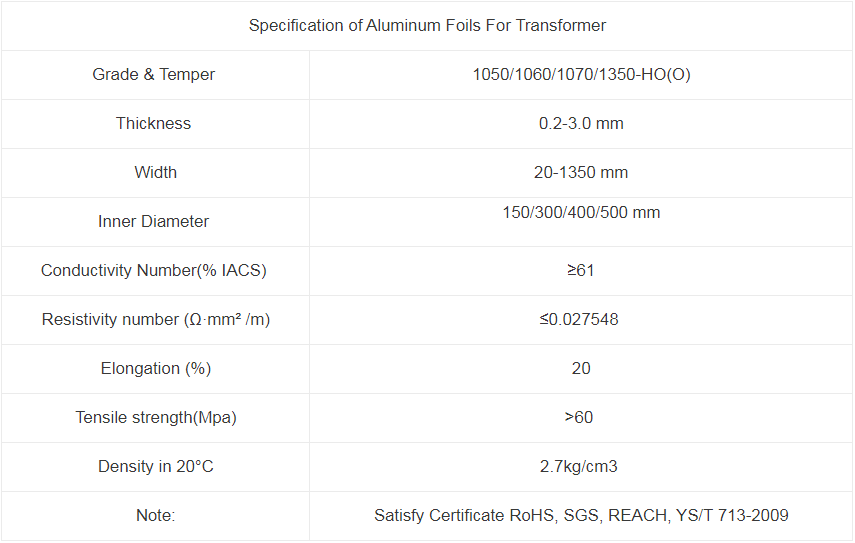 Transformer aluminum foil, aka aluminum foil for transformer, is a kind of electric aluminum foil that is generally for sale on the market. Haomei as a manufacturer and supplier in aluminum products like aluminum foils for transformer, have it for sale at factory price. The material of Haomei aluminum foils for transformer are made of aluminum foil 1050/1060/1070/1350-HO(O). And here are the parameters of aluminum foils for transformers.
